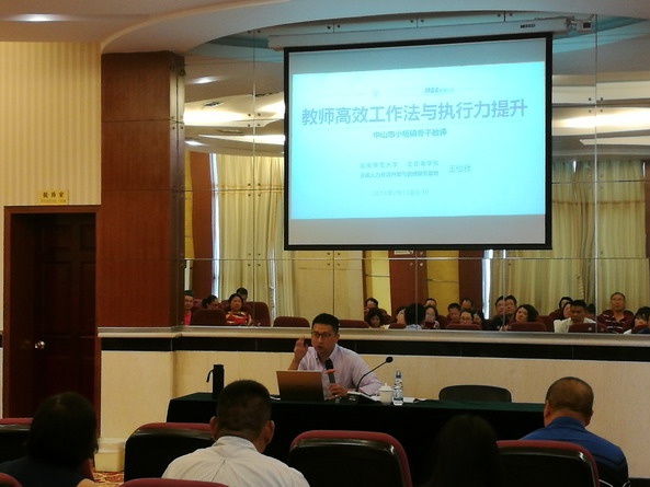 7月12日上午,王俊程教授為老師們帶來一堂幽默、接地氣并且相當實用的課程。王教授主講的題目是“教師高效工作法與執行力提升”,通過展示教師日常工作現象并提出相應的高效工作的方法,贏得老師們雷鳴般的掌聲。下午,谷潤老師充滿激情的課堂也讓老師久久回味其中。谷老師以“在立德樹人中創造職業幸福感”為題,從國內教育現狀、世界局勢說明立德樹人的重要性,通過她在學校引導學生的大量實例給老師們課堂上的啟示,讓老師們了解如何在課堂上落實立德樹人的目標。