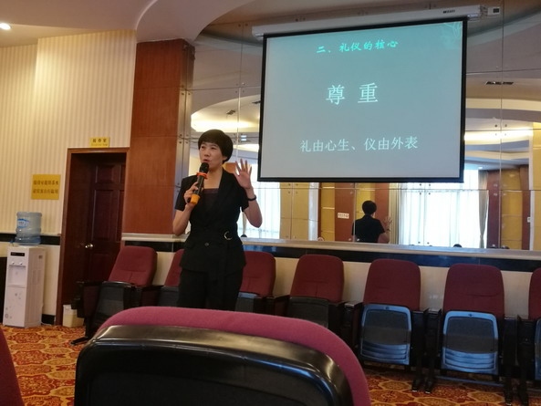 7月11日上午,鳳慧副教授以“現代教師基本禮儀及素養”為主題,介紹并帶領老師們學習教師用語、儀表、著裝、舉止儀態及交際禮儀,通過實操讓老師們掌握日常工作生活中的禮儀。下午,在忤云霞老師的指導下,老師們進行了“教師心理健康團體輔導體驗”,通過戴高帽、團體繪畫等活動,老師們認識到贊美的重要性,培養了非言語的共情能力,并認為在工作中,善于發現學生的閃光點,理解學生,師生關系才會更協調,工作也會更好地開展。在此次活動中,老師們促進了同事之間的感情,在實際教學中如何與學生相處方面深受啟發。