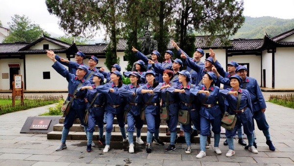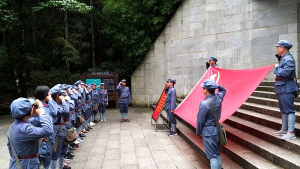 7月10日上午,學員們一大早就身著紅軍服,颯爽英姿,頗有當年紅軍風采,自豪感油然而生。尤其是來到井岡山紀念碑前合影,成為一道獨特的風景。