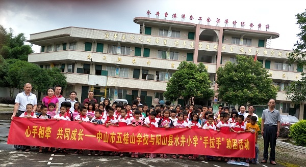 為了充分發揮城市學校在教育幫扶中的積極作用,培養青少年樂于助人的情感和強烈的社會責任感,進而引導少年兒童從小樹立“團結協作、共同成長”的良好風尚,為構建和諧社會做出積極的貢獻,近日,五桂山學校的師生代表來到清遠市陽山縣水井小學開展助困活動。