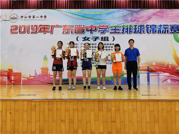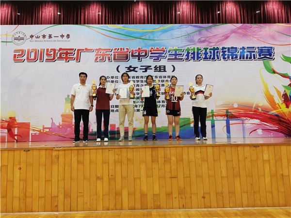 在25日下午的頒獎儀式中,廣東省學生體育藝術聯合會主席郭鼎文,中山市教育和體育局體衛藝科科長陳威與副科長黎彩花,中山市一中校長王錫文,廣東省排協副秘書長、本次比賽仲裁委員黃超峰,廣東省排球協會裁委會委員、廣州大學體育學院體育系主任、本次比賽副裁判長陳卓儒教授等出席并為獲獎運動員和運動隊、教練員等頒發獎杯和證書。
