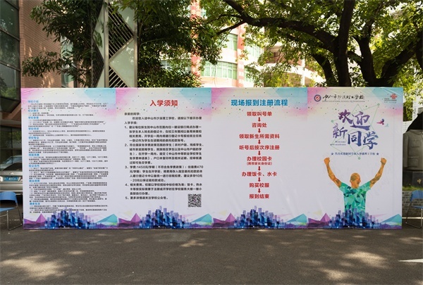 為保障注冊工作順利完成,學校制定了嚴密的工作方案,成立包括主管全面工作的副校長馮子川、副校長盧永輝、副校長葉樹人、全體行政和各專業部長等人員組成工作組,設置招生協調、咨詢、數據錄入、總務、安保參觀、叫號引導、宣傳等小組,于26日完成了校園歡迎拱門和會場標識等布置工作。