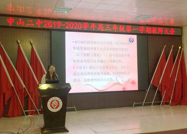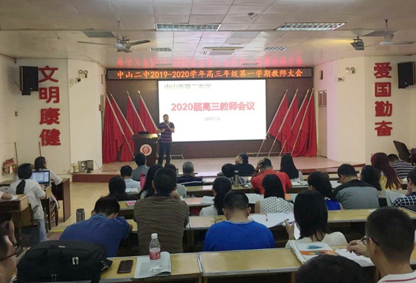 2019年7月31日上午,中山二中2020屆高三年級在學校階梯室召開高三全體教師會議。吳祥明校長、兩位年級主任及全體高三全體教師參加了此次會議。本次會議年級部劉益民副主任主持。