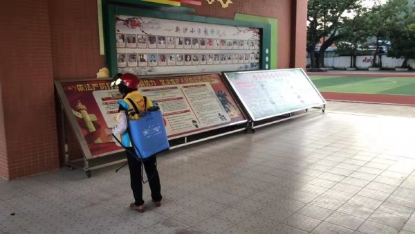 8月4日,新沙小學(xué)葉景乾校長安排了消毒人員,對整個校園進(jìn)行了一次全面的滅蚊消毒行動。在此次消毒工作中,消毒人員對校道旁的花槽、輪胎、綠化帶以及下水道、學(xué)校的垃圾池等容易孳生蚊蟲的重點(diǎn)部位進(jìn)行地毯式噴施藥物。