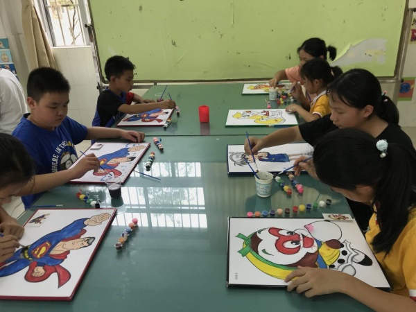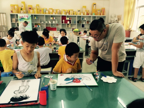 本次“漫畫(huà)伴我行”公益培訓(xùn)活動(dòng)為南朗共建單位專(zhuān)場(chǎng),由動(dòng)漫學(xué)院張志肖老師擔(dān)任輔導(dǎo)。張老師首先簡(jiǎn)介中山漫畫(huà)館、“壹法中山杯”第十一屆中山動(dòng)漫作品設(shè)計(jì)大賽,緊接著講動(dòng)漫的組成、動(dòng)漫的歷史、動(dòng)漫的繪畫(huà)步驟,重點(diǎn)突出動(dòng)漫的手法——線(xiàn)稿分層上色、黑白顏色罩染法、直接繪畫(huà)成像法。再讓孩子畫(huà)夸張的兩只動(dòng)物,發(fā)揮想象兩只動(dòng)物會(huì)怎樣對(duì)話(huà)。緊跟著播放動(dòng)漫影片、皮影動(dòng)畫(huà)、生動(dòng)簡(jiǎn)練的動(dòng)漫短片,近一個(gè)多小時(shí)的講解,深深吸引孩子們的注意力。孩子們沒(méi)有一絲的分神,生動(dòng)的漫畫(huà)作品、幽默的動(dòng)漫影片、活潑的師生互動(dòng)都是活動(dòng)中的亮點(diǎn)。生動(dòng)的動(dòng)漫作品培養(yǎng)了孩子們的觀(guān)察力,啟發(fā)孩子們的想象力,滑稽的形象打開(kāi)了孩子們漫畫(huà)創(chuàng)作的心靈之窗……培訓(xùn)的后半段時(shí)間轉(zhuǎn)移了課室,來(lái)到美術(shù)1、2室,進(jìn)行水粉渲染練習(xí),孩子們可入神了!整個(gè)培訓(xùn)活動(dòng),節(jié)奏緊湊,內(nèi)容豐富,抓住了孩子的特點(diǎn),調(diào)動(dòng)了孩子的學(xué)習(xí)積極性,把漫畫(huà)的知識(shí)滲透當(dāng)中,充分顯示出張老師的專(zhuān)業(yè)知識(shí)和豐富的培訓(xùn)經(jīng)驗(yàn)。孩子們珍惜學(xué)習(xí)的機(jī)會(huì),用心學(xué)習(xí),學(xué)有所成。