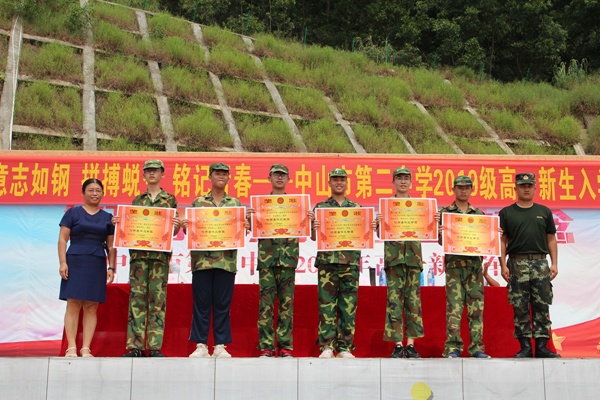 學(xué)校對模擬法庭表演學(xué)生、軍訓(xùn)優(yōu)秀學(xué)員、軍訓(xùn)之星、會操表演的優(yōu)秀班級頒發(fā)了獎狀,鼓勵他們繼續(xù)努力!學(xué)校為中山市武警支隊頒發(fā)錦旗,感謝武警支隊在軍訓(xùn)期間的貢獻。朱煥章參謀作總結(jié)發(fā)言。