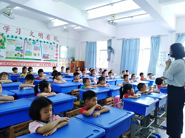 在輕松愉快的氛圍中,學(xué)生們?cè)诎嘀魅卫蠋煹慕M織調(diào)動(dòng)下,開展了生動(dòng)有趣的入學(xué)教育課。第一堂課:認(rèn)知教育。同學(xué)們?cè)诶蠋煹膸ьI(lǐng)下認(rèn)識(shí)老師、認(rèn)識(shí)新同學(xué)、認(rèn)識(shí)同桌;熟記課堂常規(guī)口令,如:小眼睛,看老師;小耳朵,認(rèn)真聽;上課發(fā)言,先舉手等。第二堂課:禮儀教育。學(xué)習(xí)清理課桌內(nèi)及周圍的垃圾,輕放桌椅,愛護(hù)桌椅,不亂刻亂畫;了解課間文明休息的方法,如:上廁所、喝水、閱讀、聊天、畫畫,不得大聲喧嘩,不能追逐打鬧等;有禮貌大膽地介紹自己;上下學(xué)要與父母道別;在校見到老師、同學(xué)微笑著向?qū)Ψ絾柡茫环艑W(xué)時(shí),主動(dòng)和老師說“再見”。第三堂課:隊(duì)列訓(xùn)練。學(xué)習(xí)聽口令排隊(duì),做到快、靜、齊,上下樓梯時(shí),有序排隊(duì)靠右走,不講話、不擁擠、不掉隊(duì)。第四堂課:熟悉校園,如:教師辦公室、飲水機(jī)、飯?zhí)谩?、操?chǎng)等;了解了午餐紀(jì)律、作息時(shí)間、放學(xué)要求等。老師們精心安排,每一項(xiàng)常規(guī)訓(xùn)練都變得有趣而快樂,同學(xué)們學(xué)習(xí)熱情高漲,一張張小臉都蕩漾著甜美的笑容。