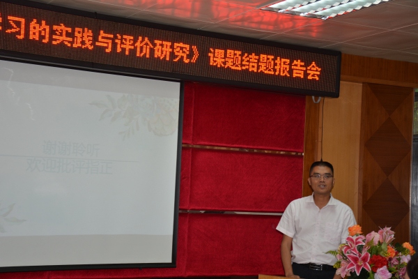 報告會的第一個環(huán)節(jié)是與會專家和領導審閱相關文字資料。緊接著,何校長就《小學生語文展演學習的實踐與評價研究》課題作了結題報告。在報告中,他從課題研究價值、研究目標和內容、課題研究方法以及課題研究的成果與成效這四個方面對課題進行了全面、細致的梳理、回顧、總結和反思。報告會的第三個環(huán)節(jié)是與會專家對課題提出指導建議。專家們對課題選題的意義、課題研究成員的研究熱情與辛勤付出以及豐碩的研究成果給予了充分的肯定,并從調查問卷題目的設置、調查數(shù)據(jù)的科學與有效性等內容對課題存在的問題給予細致的指導,并鼓勵在場所有的教師繼續(xù)以嚴謹,認真,科學的態(tài)度從事教學科研,令在場的老師獲益良多。最后,何校長作表態(tài)性發(fā)言,感謝專家們的肯定,感謝市鎮(zhèn)對課題研究的大力支持,感謝課題組成員的辛勤付出,他還表示,盡管課題已經(jīng)結題,但是績西教師對于展演學習的研究還將繼續(xù)深入。