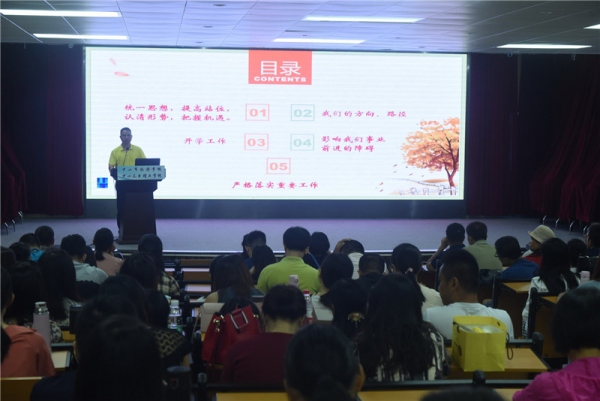 8月31日上午的全體教職工會(huì)議上,劉偉思校長(zhǎng)通報(bào)了暑期的部分工作:2019屆招生750人,粵菜師傅基地獲得扶持資金200萬,大師工作室獲扶持資金10萬,順利開展了粵菜師傅培訓(xùn)班等等。劉偉思校長(zhǎng)對(duì)暑假期間加班加點(diǎn)工作的教職員工們表示了感謝,同時(shí),也對(duì)全校教職員工提出了新一學(xué)年的工作要求:一、統(tǒng)一思想,提高站位,認(rèn)清形勢(shì),把握機(jī)遇。要對(duì)職業(yè)教育和技能培訓(xùn)的前景充滿希望。習(xí)近平考察甘肅職業(yè)學(xué)校指出,做強(qiáng)實(shí)體經(jīng)濟(jì)需要大量技能型人才,需要大力弘揚(yáng)工匠精神,發(fā)展職業(yè)教育前景廣闊、大有可為。李克強(qiáng)指出:開展大規(guī)模職業(yè)技能培訓(xùn),是提升勞動(dòng)者就業(yè)創(chuàng)業(yè)能力、緩解結(jié)構(gòu)性就業(yè)矛盾、促進(jìn)擴(kuò)大就業(yè)的重要舉措,是經(jīng)濟(jì)邁向高質(zhì)量發(fā)展的重要支撐;要落實(shí)好中國共產(chǎn)黨中山市第十四屆委員會(huì)第七次全體會(huì)議研究部署的工作,深刻把握中山發(fā)展現(xiàn)狀,找準(zhǔn)工作著力點(diǎn)和突破口;要深刻認(rèn)識(shí)香港暴亂的影響、危害,堅(jiān)決維護(hù)國家的主權(quán)、安全和發(fā)展利益。二、堅(jiān)持以習(xí)近平新時(shí)代中國特色社會(huì)主義思想為指導(dǎo),全面貫徹黨的教育方針,落實(shí)立德樹人根本任務(wù),堅(jiān)持中山德育文化理念,完善中山德育工作體系,深化課程育人、文化育人、活動(dòng)育人、實(shí)踐育人、管理育人、協(xié)同育人,著力培養(yǎng)擔(dān)當(dāng)民族復(fù)興大任、有博愛創(chuàng)新精神的時(shí)代新人。學(xué)校將以黨建工作為抓手,進(jìn)一步打造干部隊(duì)伍,并采用加強(qiáng)黨的領(lǐng)導(dǎo)--把握意識(shí)形態(tài)--提升育人水平--突出頂層設(shè)計(jì)--狠抓教學(xué)、德育常規(guī)--實(shí)施精細(xì)管理--開展專業(yè)研究--實(shí)現(xiàn)立德樹人的路徑,落實(shí)學(xué)校各項(xiàng)工作任務(wù)。三、開學(xué)后的課程安排、班主任以及任課教師安排、新生接待、課室安排、后勤服務(wù)、開學(xué)典禮等各項(xiàng)事務(wù)必須落實(shí)到位,責(zé)任到人。四、本學(xué)年度必須落實(shí)的確保政治安全,進(jìn)一步加強(qiáng)意識(shí)形態(tài)工作、科學(xué)設(shè)置課程、落實(shí)安全工作、開展“不忘初心,牢記使命”主題教育、建立健全教師師德建設(shè)長(zhǎng)效機(jī)制、進(jìn)一步整合升級(jí)改造專業(yè)等18個(gè)重要工作。