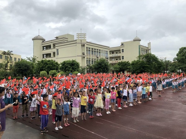 學(xué)校全體師生排列著整齊的隊(duì)伍齊聚田徑場(chǎng),共同參與“我為祖國(guó)升國(guó)旗”升旗儀式。活動(dòng)中,同學(xué)們昂首挺胸,精神抖擻地望向升旗臺(tái),伴隨著《義勇軍進(jìn)行曲》的奏響,注視著冉冉升起的五星紅旗。全體師生齊聲歌唱國(guó)歌,揮動(dòng)手中的小紅旗,表達(dá)出對(duì)祖國(guó)崇高的敬意。升旗儀式后,學(xué)校吳燕芳校長(zhǎng)發(fā)表了熱情洋溢的講話,教導(dǎo)同學(xué)們要珍惜當(dāng)下來(lái)之不易的生活,努力奮斗,為祖國(guó)未來(lái)的發(fā)展貢獻(xiàn)自己的一份力量。