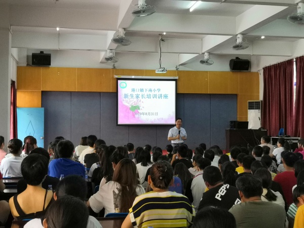 2019年8月31日,在港口鎮(zhèn)下南小學(xué)報(bào)告廳進(jìn)行了2019-2020學(xué)年新生家長(zhǎng)培訓(xùn)活動(dòng),培訓(xùn)時(shí)間為一天,由少先隊(duì)大隊(duì)輔導(dǎo)員戴艷琳主持本次培訓(xùn)活動(dòng)。