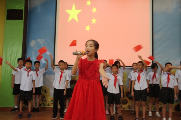 緊接著,學生代表邱筠善同學演唱《歌唱祖國》表達了對祖國的熱愛之情和爭做品學兼優的好少年的決心。
