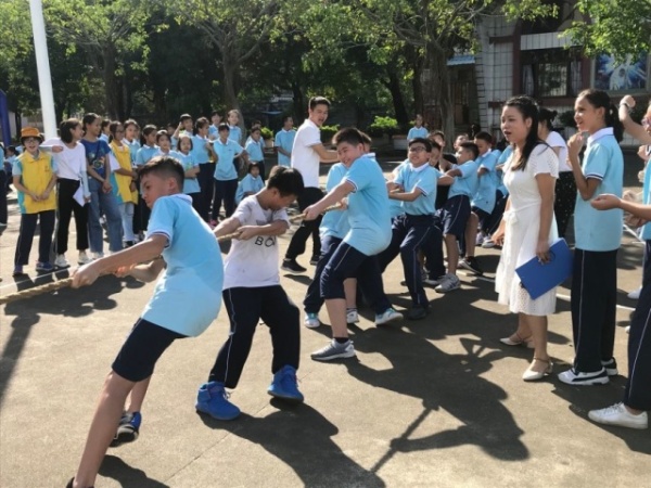 在接下來的兩天軍訓中,學生們學習軍姿、轉體、踏步。他們雖苦雖累、揮汗如雨,但他們在其中成長,他們在痛苦中磨練意志,在嚴謹中鑄造堅韌,在互助中學會團結……在拔河比賽中,同學們擰成一股繩,齊心協力。在接力比賽中,他們互相協作與鼓勵,為彼此吶喊助威。在軍訓期間,年級組還組織了各班拔河比賽、迎面接力等豐富多彩的活動,在活動中增強了班級的凝聚力。