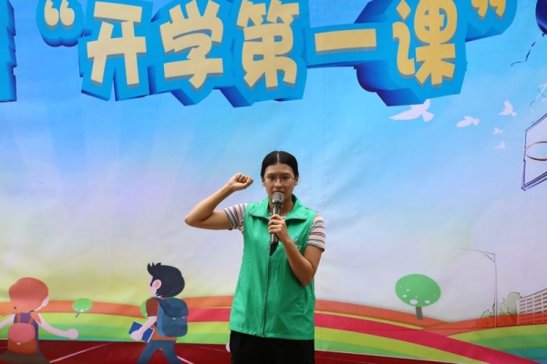 典禮最后由吳校長進行《開學第一課》主題講話。吳校長在《五星紅旗我為你驕傲》的歌聲中開始演講,講述國旗的故事,講述近代史上的國難,講述中華崛起的,希望學們努力學習,樹立理想,做四有新人,為祖國的繁榮昌盛做出自己的貢獻。