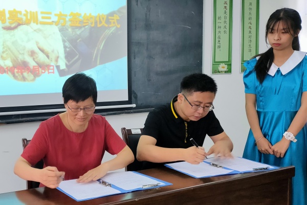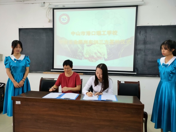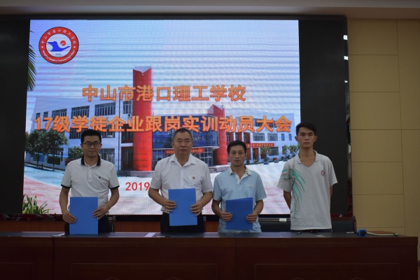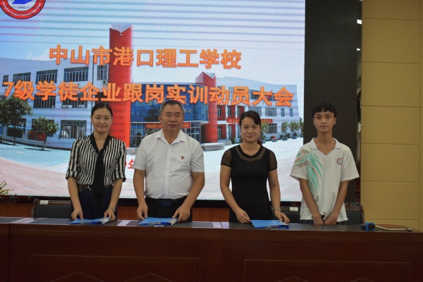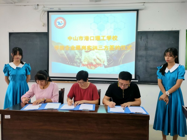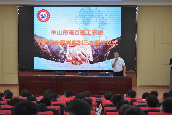 隨后三水電子(中國)有限公司,中山市大洋電機有限公司,中山市崇高玩具制品廠有限公司,中山市中泰龍辦公用品有限公司分別與學(xué)校簽訂了校企雙方共同培養(yǎng)“現(xiàn)代學(xué)徒”的合作協(xié)議。接著,校企生(家長)代表簽訂了港口理工學(xué)校學(xué)徒企業(yè)跟崗實訓(xùn)三方協(xié)議。然后各企業(yè)分別派代表展示各自的企業(yè)文化及相關(guān)制度,企業(yè)對學(xué)徒實訓(xùn)的工作安排等。