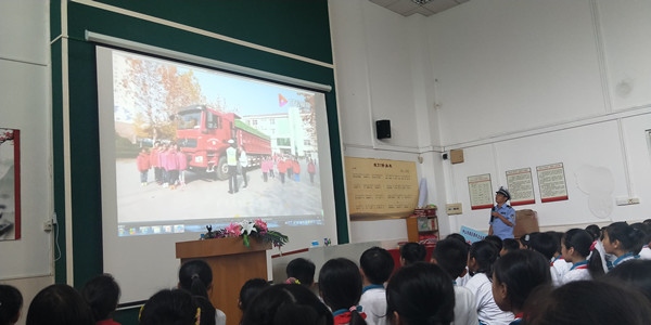 首先,授課老師給學生們觀看了一則交通安全短片。在短片中,同學們認識到日常生活中常常出現的交通安全問題,一幕幕驚人的片段都吸引著同學們的目光,引起了在座同學的思考。接著,老師為同學呈現了一組數據:在中國每90秒就有一名兒童在交通事故中死亡,主要原因有兩個,第一是有小朋友突然出現到機動車道,第二是小朋友從車前或車后突然竄出來,讓司機防不勝防。因此,老師提醒學生們一定要遠離車輛的盲區,尤其是大型貨車。