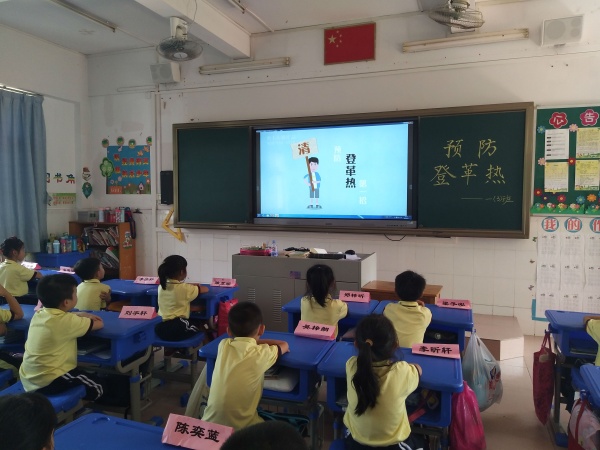 班會課上,班主任以區防疫中心派發的預防登革熱知識為內容的PPT及動畫視頻,細心講解,循循善誘,讓學生明白登革熱是一種通過蚊子叮咬傳播的急性傳染病,如何預防這傳染病,特別強調,在登革熱高發期,學生盡量減少外出,特別是少去草地、積水等蚊蟲密集的地方,防范蚊蟲叮咬。要求值日生每天對教室進行清掃消毒;對衛生死角要進行全面檢查,清除垃圾雜物等,讓他們一起行動起來,預防登革熱。