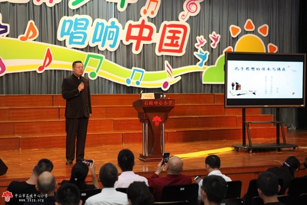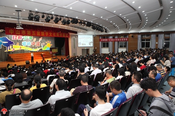 為弘揚國學,傳承中華優秀傳統文化,2019年10月16日晚,中山市國學促進會在石岐中心小學舉辦了“中山市中山市第五屆國學文化周開幕式暨首場報告會”。中山市文化廣電旅游局副局長呂麗珠,中山市社會科學界聯合會黨組成員、辦公室主任盧曙光,中山市教育學會會長、廣東省國學教育專業委員會副理事長陳春艷,中山市教研室傳統文化教育教研員林曉潔,中山市文化廣電旅游局副館長方文,中山市國學促進會創會會長蔡國贊,副會長兼秘書長潘冬暉, 中山市石岐中心小學副校長盧超文及該校教師、家長等近二千人參加了活動。