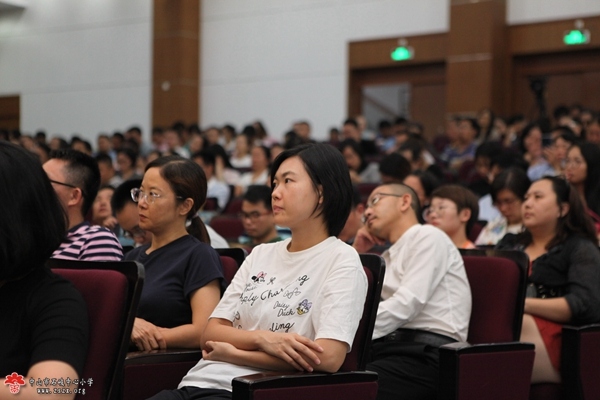 開幕式結束后,曲阜孔子文化學院院長、復圣顏子第七十八代嫡孫、著名書法家顏廷淦先生作了題為“孔子思想的傳承與家風”的報告。顏院長生動介紹了了孔子思想的主要內容:人文化成、躬身修己,人生意義、內圣外王之道、天人性命。重點講述了修養人格,培養正直、真誠、擔當和責任,強調了人之為人的根本特征,即人具有四心,惻隱、羞恥、辭讓、是非之心。在正確理解孔子思想方面,他提出了五個原則:民本思想、與時俱進、海納百川、實事求是、經世致用。顏院長針對當下的社會環境,希望通過孔子文化教育的普及,繼承好傳統文化。面對眾多家長聽眾,他坦誠地說,作為家長,就要自我修養,為孩子樹立榜樣。