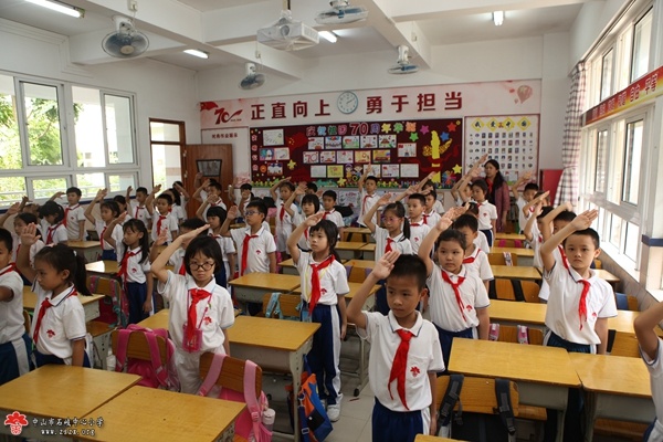 10月11日上午,為幫助學生了解少先隊的光榮歷史,為學生入隊做充分準備,石岐中心小學一(3)中隊輔導員阮允良老師給學生們上了一節莊嚴而又隆重的隊前教育主題班會課。