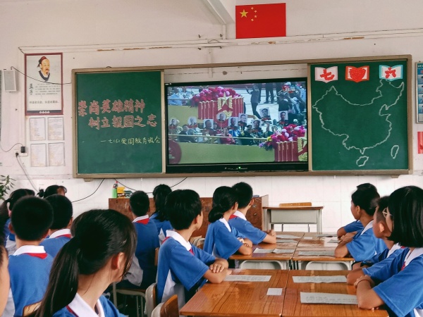 首先,同學(xué)們集體觀看了《新中國成立70周年閱兵儀式“致敬方陣”》,并回答“為什么當(dāng)老一輩革命者乘車來到天安門前,所有的觀眾都不約而同地起立致敬”,方老師根據(jù)同學(xué)們的回答給予適當(dāng)?shù)囊龑?dǎo)和評價(jià),讓孩子們懂得:老一輩革命者為了今天的美好生活,甘愿奉獻(xiàn)自己的利益,哪怕犧牲自己的生命,他們是中國的脊梁,是我們的英雄。