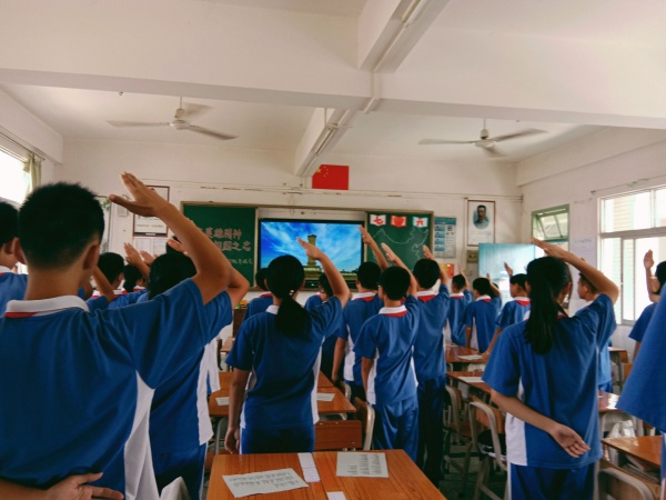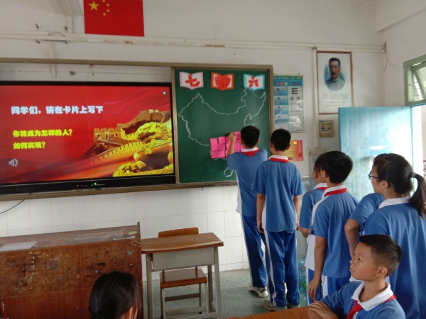 通過分享英雄故事,方老師引導(dǎo)同學(xué)們提煉出一個(gè)共同點(diǎn):他們“熱愛人民,熱愛祖國,為人民謀幸福,為祖國謀發(fā)展”。有這么多的英雄為了我們現(xiàn)在的美好生活前仆后繼,不斷進(jìn)取,不畏艱難困苦,奮勇拼搏!這也自然而然地升華了同學(xué)們的愛國情感,同學(xué)們紛紛覺得:作為中華人民共和國的一份子,生活在這樣一個(gè)越來越強(qiáng)大的祖國中,我們倍感驕傲、幸福與自豪!為了抒發(fā)同學(xué)們對祖國母親的愛,全班集體朗誦《我崇拜英雄》,并在卡紙上寫下自己將成為怎樣的人,如何實(shí)現(xiàn)?同學(xué)們都無限地感慨:我們要將自己的理想與中華民族偉大復(fù)興夢相結(jié)合,努力提升自身素質(zhì),豐富知識,開拓眼界,心懷民族,向英雄們看齊!