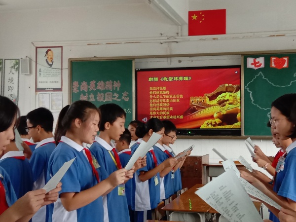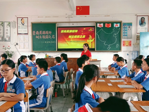 為慶祝中華人民共和國成立70周年,弘揚(yáng)愛國主義精神,引導(dǎo)廣大中學(xué)生銘記英雄、崇尚英雄、捍衛(wèi)英雄、關(guān)愛英雄、學(xué)習(xí)英雄,珍惜來之不易的和平生活,將自身的理想與祖國的發(fā)展相結(jié)合,樹立報(bào)國之志,為實(shí)現(xiàn)中華民族偉大復(fù)興中國夢貢獻(xiàn)自己的一份力量。平東學(xué)校于10月23日舉行了“崇尚英雄精神,樹立報(bào)國之志”愛國主義主題教育班會課活動(dòng),由七(6)班方曉紅老師執(zhí)教。