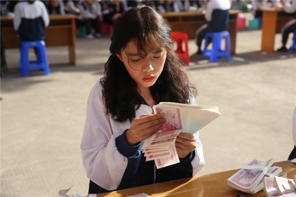 修德載志當自強,精技渡遠做棟梁。商貿專業合唱小分隊的學生以一首《鄉渡遠方》拉開序幕,來自四方的莘莘學子以歌唱校歌的形式表達了對鄉渡校園文化的詮釋。接著物流服務與管理專業的學生展示精致嫻熟的叉車作業技能,四名同學分工合作,對貨物進行層層疊放,喻意“步步高升”。國際商務專業(會計方向)的學生緊接著出場,13名女生,以花式多樣的手法、令人眼花繚亂的速度,分別以單張單指點鈔法及多指多張點鈔法展示了她們勤學苦練多年的熟練點鈔技能,贏得場外觀眾的陣陣掌聲。