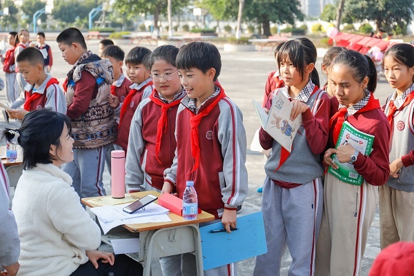 兌獎區的級長和家長義工們也忙得不亦樂乎。同學們根據記錄單上獎章數選擇自己喜歡的書籍或文具。他們抱著獎品喜滋滋的樣子感染了周圍的人。接近3:50活動結束,同學們回到教室按捺住激動的心情聆聽朱校長的總結。班主任登記每人獲得獎章個數及班級總數,教導處收集數據以班級平均數評出各年級的“智慧班級”。