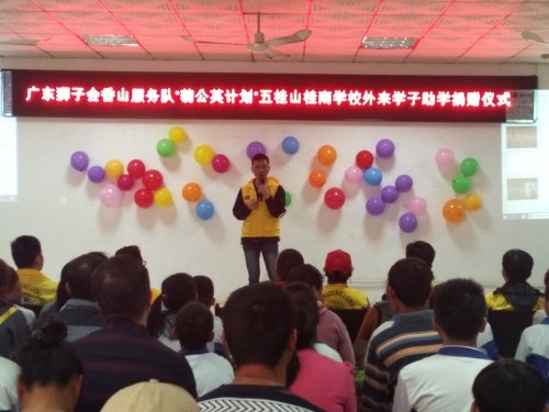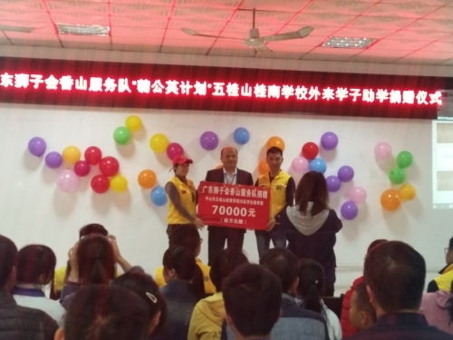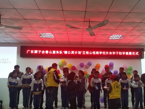 2019年12月27日下午3:30,廣東獅子會香山服務隊來到桂南學校,在桂南學校大會議室舉行了“‘蒲公英計劃’五桂山桂南學校關(guān)愛外來學子助學”活動。參加本次捐贈儀式的有廣東獅子會香山服務隊的10位獅兄獅姐、桂南學校中學部阮仕斌校長以及桂南學校35名受資助學生和家長。