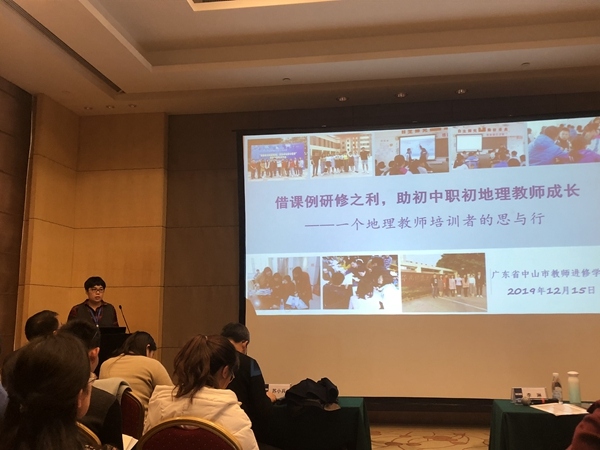 2019年12月14-17日,中山市教師進(jìn)修學(xué)院焉南老師赴武漢參加中國教育學(xué)會地理教學(xué)委員會2019年綜合學(xué)術(shù)年會,并受邀作了題為《借課例研修之利,助職初地理教師成長》的專題報告,向來自全國各地的與會者介紹了中山市新教師三年培訓(xùn)中地理學(xué)科專業(yè)課集中培訓(xùn)的經(jīng)驗做法。