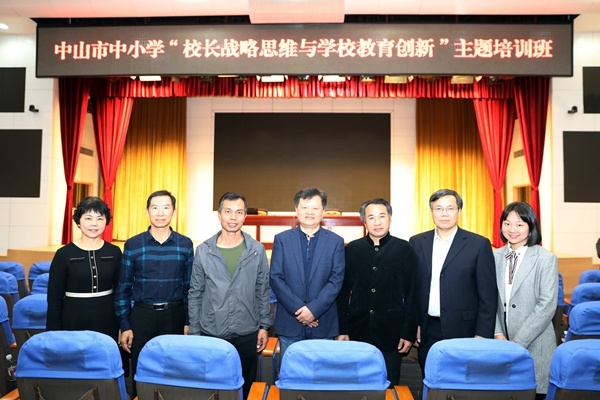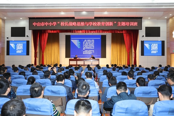 12月14日上午,中山市中小學“校長戰略思維與學校教育創新”主題培訓在中山市委黨校香山堂舉行。教育部中小學名校長領航工程江蘇基地首席專家、江蘇省教育廳教師教育指導委員會委員嚴華銀教授為全體學員做了《轉型:走向2035的中國校長》的專題講座。市教育工委副書記廖誠,市教體局師資科科長黃慶財出席本次活動,活動由中山市委黨校教育行政管理教研室主任周立勝主持。全市中小學校長、市校長工作室全體成員、市初中青年干部“3680”種苗工程研修班學員以及市第十七期小學校長任職資格培訓班全體學員共450余人參加了此次培訓。