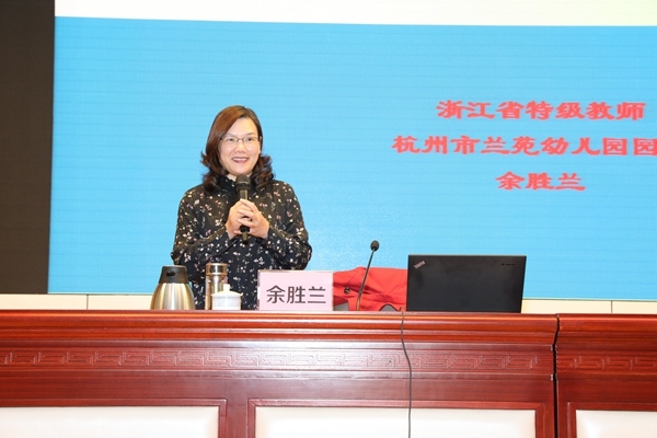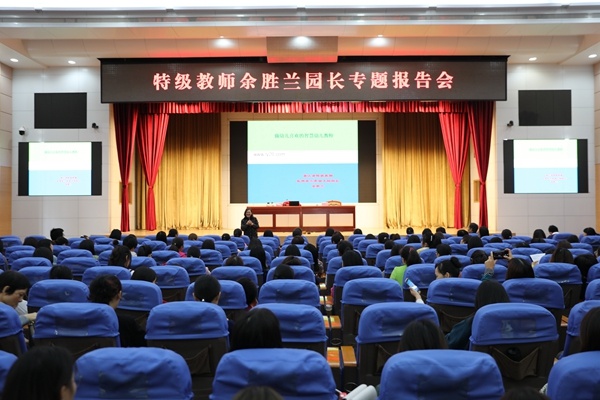 高質量的學前教育離不開高質量的師幼互動。《綱要》中指出:“教師要成為幼兒的支持者、合作者、引導者?!比绾螌⑦@一理念轉化為我們的教育行為,重新定位自己的角色將直接影響積極師幼互動的建構。為了讓廣大一線教師強化教育理念,提高專業素質,11月30日上午,市教師進修學院學前教育教研室特邀杭州市蘭苑幼兒園余勝蘭園長作“做幼兒喜歡的智慧教師”專題報告。