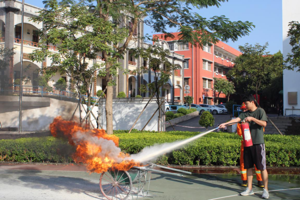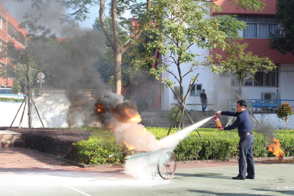 隨著大量濃煙向四周擴散,急促的警報聲拉開了消防安全疏散演練序幕,全校師生按照預先制定的消防演練方案,迅速有序地疏散到操場集合。隨后,物業公司消防員就火災的預防、火場自救及逃生方法、日常火災的撲救等消防基本常識進行了講解。為了進一步鞏固學習效果,消防員還現場演示了滅火器的操作程序,并指導師生們正確掌握使用滅火器的方法。
