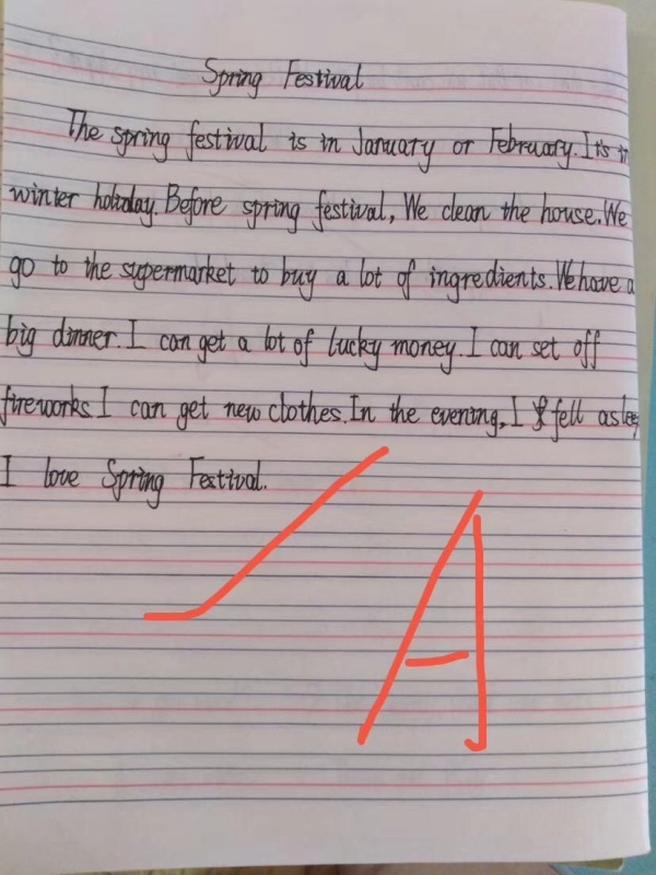 在這期間,老師們利用釘釘群、微信群等網絡通訊工具進行線上學習指導、答疑。學校的全體師生努力做到“停課不停學”,確保孩子們在家健康、有效的學習。當老師們看到孩子們的優秀作品,也感受到孩子們的學習熱情高漲,為同學們的自學能力點贊。老師們則在線上認真、耐心地批閱作品,這照片上的圈圈點點、一筆一劃都傾注著對孩子們的關愛。