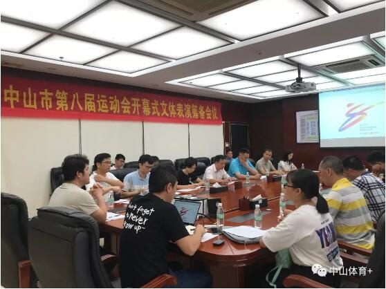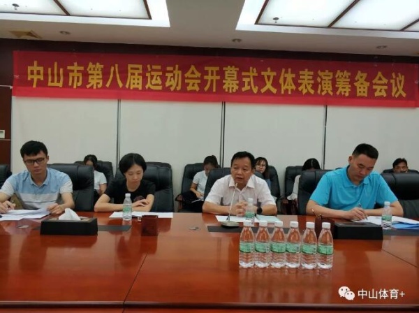 7月4日,2019中山市第八屆運動會開幕式文體表演籌備工作會議在中山市教育和體育局召開。市運會組委會委員、市教體局副局長唐杰偉,市運會組委會競賽組組長、市教體局體衛藝科科長陳威,市運會組委會競賽組副組長、市教體局體衛藝科副科長黎彩花,市運會組委會內設機構相關工作人員,市運會開幕式執行團隊工作人員,以及各文體表演節目的相關負責人參加會議。