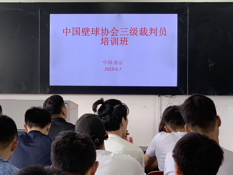 2019中國壁球協會三級裁判員培訓班6月7日--8日在南京舉行,此次培訓班由中國壁球協會主辦,江蘇省壁球運動協會承辦,國家級壁球裁判員趙俊、代會新為近60名學員進行為期兩天的培訓,并取得圓滿成功。