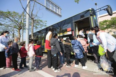 左手攥著1元紙幣,右手緊握欄桿,小心翼翼地踏上車門處的臺階……在老師的協(xié)助下,孩子們整齊有序地坐上公交車前往假日廣場,途中還不時向窗外投去好奇的目光。
