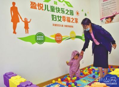 社區(qū)居民帶孩子來鄰里文化家玩耍。