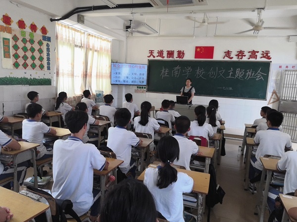 為扎實推進創建全國文明城市工作,踐行社會主義核心價值觀,構建和諧校園,2020年7月8日,桂南學校各班級開展了主題為“告別陋習,走向文明”的創文主題班會。