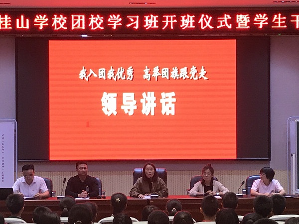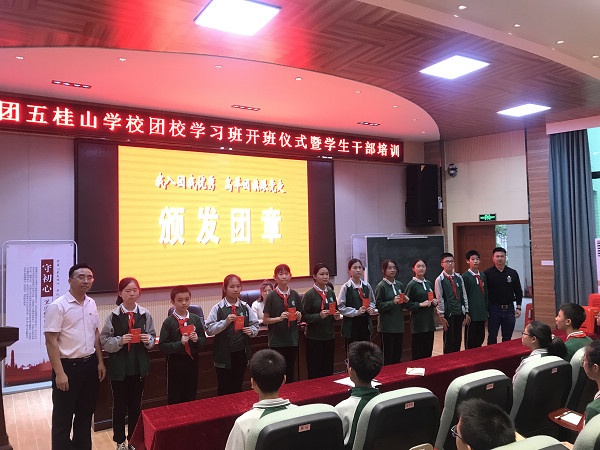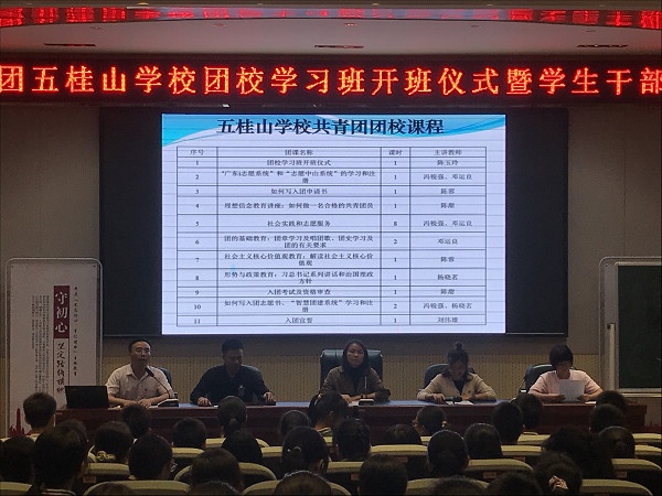 為進(jìn)一步加強(qiáng)學(xué)校共青團(tuán)工作,壯大團(tuán)組織的力量,增強(qiáng)團(tuán)組織的戰(zhàn)斗力,提高學(xué)生思想政治素質(zhì),更好地為學(xué)校發(fā)展服務(wù)。2020年10月29日下午,五桂山學(xué)校團(tuán)委在報(bào)告廳舉辦了以“我優(yōu)秀我入團(tuán) 不忘初心跟黨走”為主題的第18期團(tuán)校學(xué)習(xí)班開班儀式暨學(xué)生干部培訓(xùn)。開班儀式由團(tuán)委委員陳蓉老師主持,五桂山學(xué)校黨支部代表何榕委員、中學(xué)德育處劉偉雄主任、團(tuán)委老師和各班被推薦參加學(xué)習(xí)的優(yōu)秀學(xué)生以及優(yōu)秀少先隊(duì)員代表、干部共計(jì)110余人。。