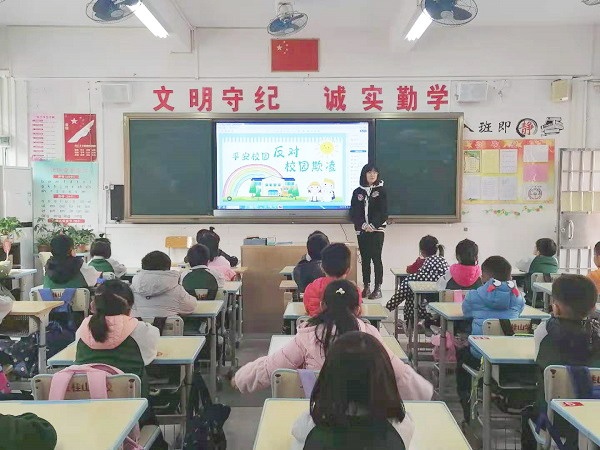 在主題班會上,各班班主任展示了校園欺凌給受害者帶來的傷害及嚴重后果,從“中小學生的哪些行為是屬于校園欺凌”、“校園欺凌會造成哪些危害”等方面對有關校園欺凌的常識進行講解,使學生了解了校園暴力的危害。同時,引導學生識別校園欺凌,遇到校園暴力時,如何保護自己,要敢于向校園欺凌說“不”,學會正確處理同學之間的關系。