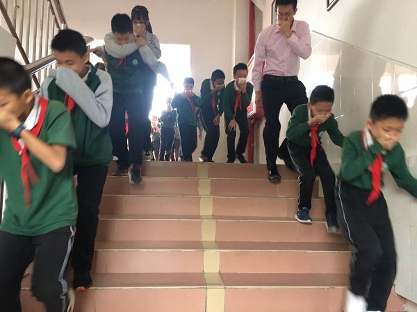 10日上午,第一節課下課,火災警報聲響起。學生們立刻拿出平時備用的小毛巾,用礦泉水澆濕并捂住口鼻,在老師的帶領下彎腰有序地撤離火場,跑向遠離火場的指定安全地點。小學部只用了4分多鐘,一千多名學生安全有序地疏散到指定地點。中學部最快的班級在不到46秒鐘就集中完畢,共耗時1分51秒。逃生時沒有發生擁擠、踩踏事故。