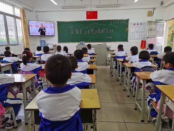 12月4日,組織學生觀看《國家憲法日“憲法晨讀”活動》直播,同步跟讀憲法晨讀內容,觀賞部分優秀學生展演,傾聽領導講話和學習法制課,讓學生進一步了解了學習憲法的必要性和重要性。同時組織學生參與網上“憲法小衛士”活動,培養學生知法、懂法、守法。