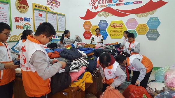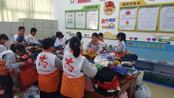 活動恰逢新年的第一波寒潮,但也抵擋不住同學們的熱情,在短短的3天時間里,五桂山學校的學生踴躍參加活動,把家里閑置不穿的衣服收集起來,由各班負責人統一交到了團委辦公室。交上來的衣物堆滿了團委辦公室的辦公桌和過道。五桂山學校的學生志愿者認真整理衣服,發現絕大部分的衣服都是比較新的,基本符合捐贈的要求。整理完畢后,衣物將全部上交到中山市青年志愿者協會,捐贈給中山對口支援地區,幫助貧困區兒童添衣添物,奉獻愛心。