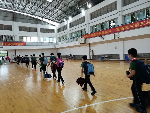 五桂山學校為孩子們返校復課做了精心的準備,各類免洗消毒液等物資一應俱全。校園生活的每一個環節,校園活動的每一個細節,都蘊藏著貼心的守護。走進校門,地面上張貼著清晰顯著的標識線,文明小天使和老師們早已守候在校門兩側維持秩序,時刻提醒孩子們戴好口罩,排隊時注意間隔。校門處通道內的熱成像體溫檢測儀為每一個通過的學生測試體溫。打掃干凈消毒完成的教室又迎來了朗朗讀書聲。