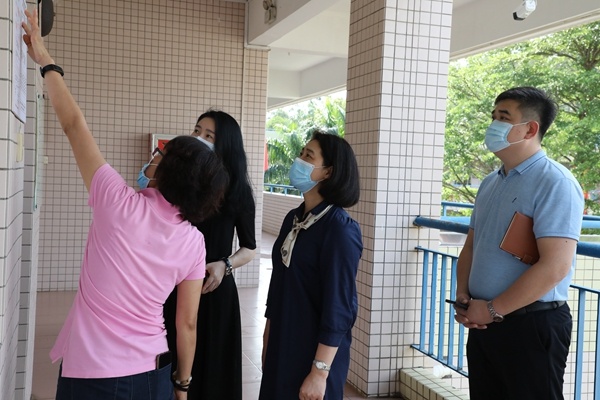 上級行政部門也行動起來。復學通知發布后,4月15日開始,區教指中心、社區衛生服務中心、區疾控中心等部門和學校健康衛生副校長多次來檢查指導學校的復學工作,讓學校的準備工作更有針對性、更趨于完善。4月21日,中山市疫情督查督辦組及市教育工委督查組也來到學校檢查指導工作,給學校提了許多寶貴的建議。
