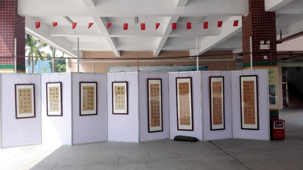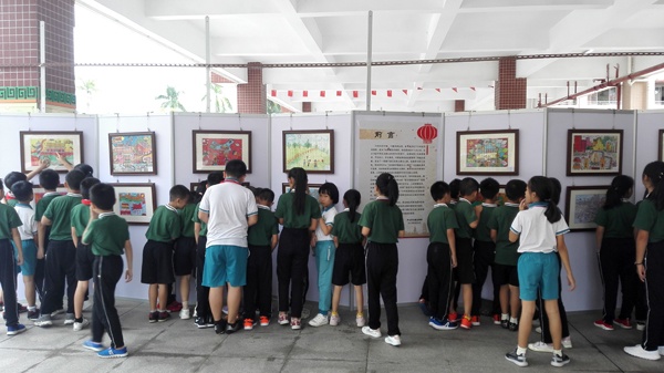 為迎接新中國70華誕,歌頌祖國大好河山、人民幸福生活、弘揚當今的和諧社會,表達同學們對祖國的熱愛,五桂山學校分別在小學部、綜合樓、中學部等地方舉辦了“慶祝中華人民共和國成立70周年美術作品展”,展覽從9月30日持續到10月21日。