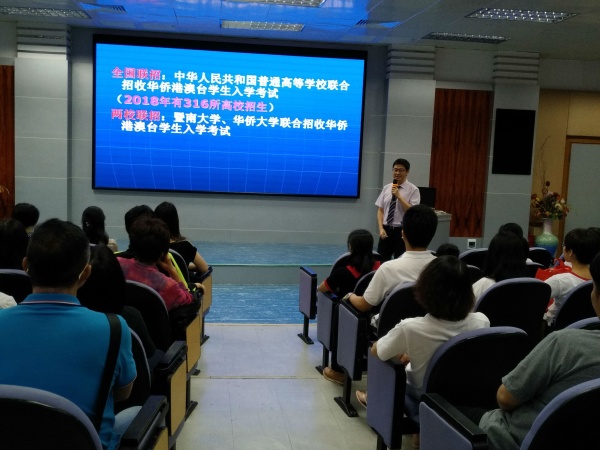 而在資訊室聯考班會場,代表學校接待家長們的教務主任劉榮萬針對全國聯招和兩校聯招的考試形式、考試要求以及時間分別進行了詳細的講解。之后劉主任特別安排了自由交流時間,在場的家長和學生們就學業上的各種問題與在座的各位科任老師進行溝通,氣氛熱烈而融洽。