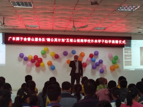 2019年12月27日下午3:30,廣東獅子會香山服務(wù)隊(duì)來到桂南學(xué)校,在桂南學(xué)校大會議室舉行了“‘蒲公英計劃’五桂山桂南學(xué)校關(guān)愛外來學(xué)子助學(xué)”活動。參加本次捐贈儀式的有廣東獅子會香山服務(wù)隊(duì)的10位獅兄獅姐、桂南學(xué)校中學(xué)部阮仕斌校長以及桂南學(xué)校35名受資助學(xué)生和家長。